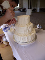 This wedding cake was to have what we dubbed the "messy" frosting, somewhat like the picture below. I searched the internet for directions or similar examples, and didn't find any, so I went with my best guess of what I thought it could be.
